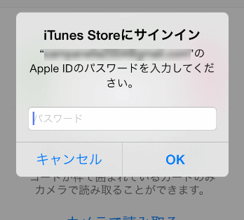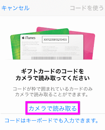 カメラが起動するので、先ほどのiTunesカードの裏側をカメラに映るようにします。すると、自動的に番号が認識されます。