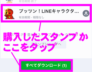購入したスタンプか、一番下の「すべてダウンロード」をタップします。