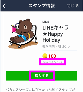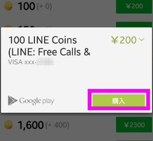 購入するにはあらかじめコインを購入しておき、スタンプを購入するときは、コインを消費して購入することになります。