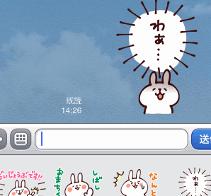 相手側にはこのような先ほど選択したスタンプと、吹き出しが表示されます。