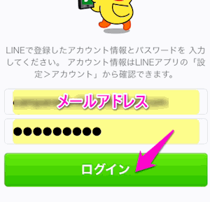LINEに登録してあるメールアドレスと、パスワードを入力し、「ログイン」をタップします。