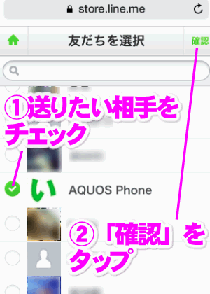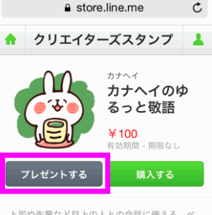 iPhone上のLINEからは友だちにスタンプをプレゼントできませんが、store.line.meからはプレゼントすることが出来ます。