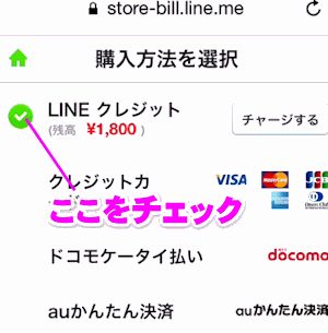 購入方法が表示されるので、「LINE クレジット」をチェックします。