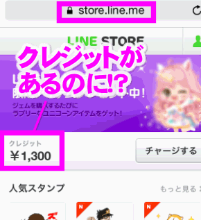 ブラウザ上のLINE STOREは、「クレジット」。ここにいくらお金が残っていても・・・・