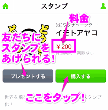 以下は、友だちに有料スタンプをプレゼントする方法です。