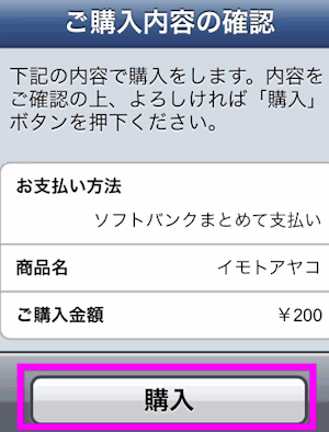 購入方法で、「ドコモケータイ払い」をチェックし、一番下の「確認」をタップします。