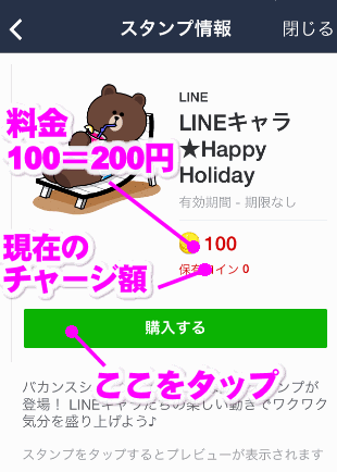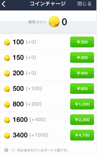 なお、スタンプはほとんど100コインが必要で、100コイン=200円(税込み)になります。