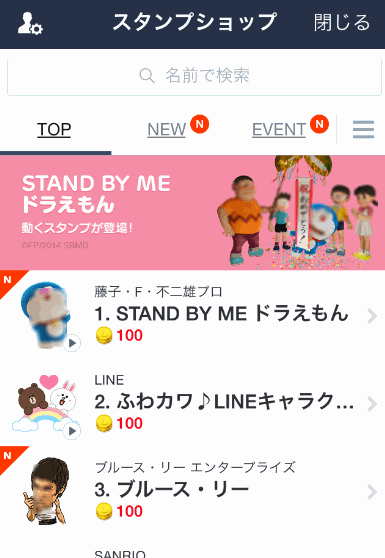 スタンプショップが表示されるので、好きなスタンプを探します。