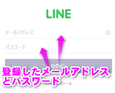 LINEに登録したメールアドレスと、パスワードを入力し、「ログイン」をタップします。