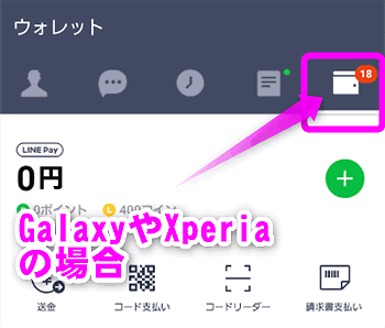 Xperiaなどアンドロイドの場合は、右上の四角で囲った部分をタップします。