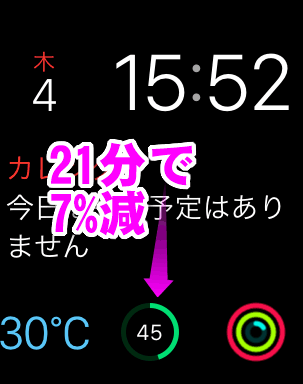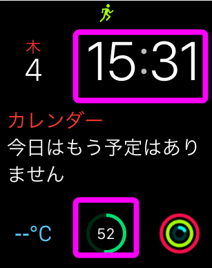 15時31分の段階で、Apple Watchのバッテリー残量は「52%」でした。