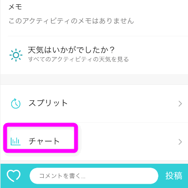 とはいえ、Runkeeperも本格的なデータを見ることができます。「スプリット」をタップすると