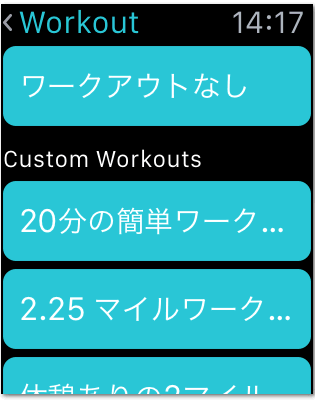「ワークアウト」は、「3キロ走る」とか「20分走る」みたいな目標値に従ってトレーニングする場合に選択します。