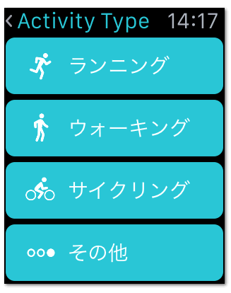 Apple Watchからも「ランニング」なのか「サイクリング」なのかを選択できます。
