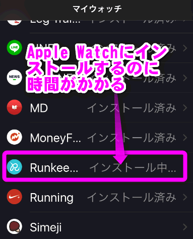 Apple Watchへのインストールは結構時間がかかるので、アプリをタップしても起動しない場合は、iPhone側で確認してください。