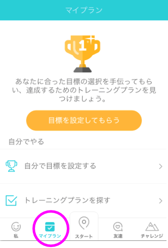 「マイプラン」には、日々のトレーニングの目標値や、トータルで〇km走破したときに知らせてくれたりしてモチベーションを上げてくれます。