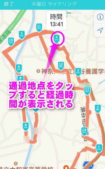 マップではこのように、距離と経過時間を参照することができます。