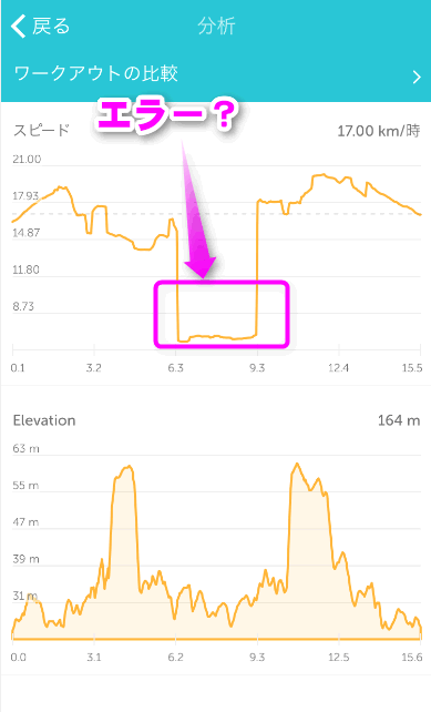 なお、6.3キロ~9.3キロで速度がガクッと落ち込んでいますが、これはエラーっぽい。