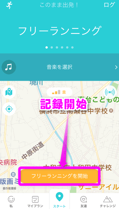 「スタート」をタップすると記録開始です。