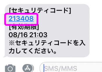 すると2段階認証を設定したときと同じようにセキュリティコードが記載されたSMSが届きます。