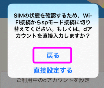 このようなエラーが出た場合、Wi-Fiをオフにしてください。(「戻る」をタップします)