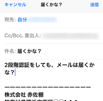 試しに2段階設定にしてから新しくメールを送信しようとすると・・・