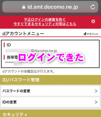 どこでもいいのですが、ドコモのサイトのログイン画面を表示させます。