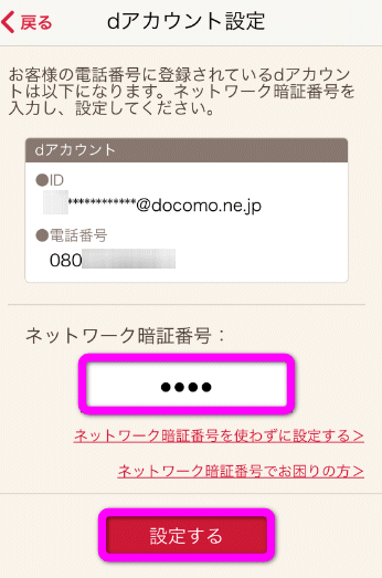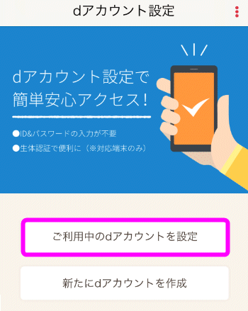 「dアカウント設定」アプリを立ち上げ、初期設定をします。