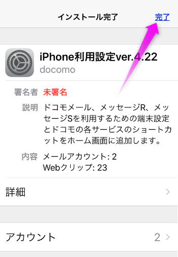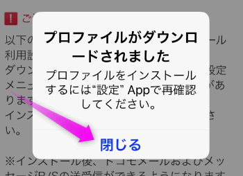 プロファイルがダウンロードされました。「閉じる」をタップしてください。