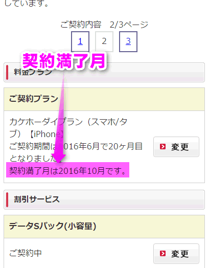 続いて、契約満了月を確認する方法を紹介します。機種変などをした場合、意外と契約は機種変で更新されなかったりするので、必ずあらかじめ確認してください。