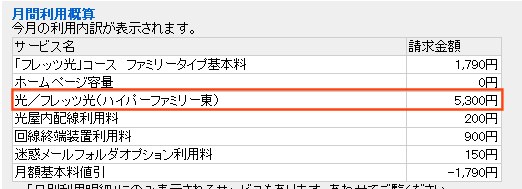 NTTのフレッツ光のサイトでは、月額利用料金が「5,460円」となっていて微妙に料金が違いますが・・・よくわかりません・・・。