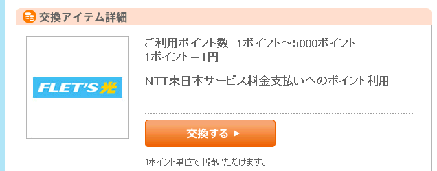 このポイント、なにに使えるかって言うと(色々な買い物にも使えるのですが)、フレッツ光などの料金にポイントを充てることが出来るらしい。