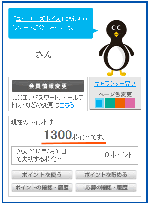 で、ちょっとしたアンケートに答えるとさらに300ポイントが追加。