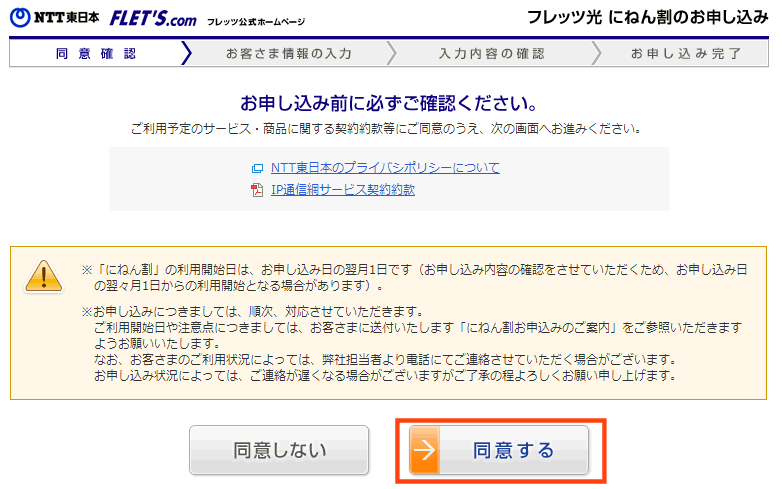 どうも「FLET'S光メンバーズクラブ」に加入しないと申し込めないようなので、あらかじめ加入しておくといいでしょう。