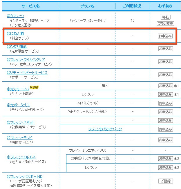 フレッツ光のにねん割を申し込んでみた