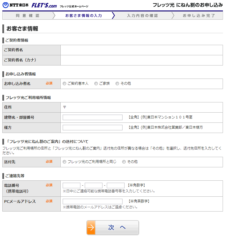 お客様情報を入力。