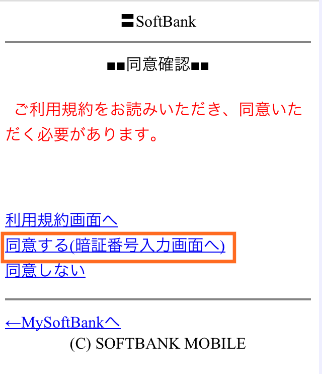 リンクをクリックすると、左のような画面になるので「同意する(暗証番号入力画面へ)」をタップします。