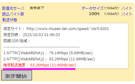 ちなみに「フレッツ光」だと、なんと93Mbpsほどの速度がありました。