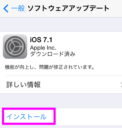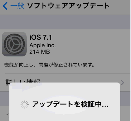 私の場合は、自動でiOS7.1自体のダウンロードは完了していたので、検証が始まり、インストールするだけでした。