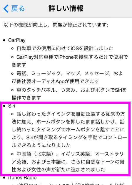 今回、私にとって体感できる大きな変更点としては、Siriの使い勝手の向上と、発音が自然になったことでしょうか。