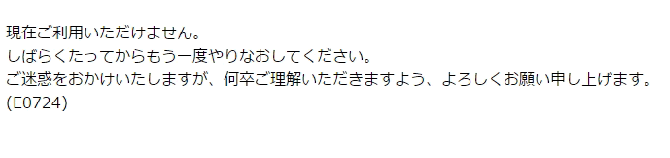 予約開始ごろは、何回クリックしてもこのようにビジーを知らせるエラー画面ばかりでした。