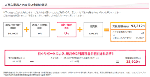 iPhoneの価格から月々サポートを引いた額が表示されます。