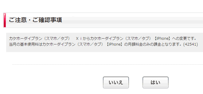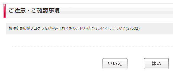 「機種変更応援プログラム」にチェックを入れずに進めようとしたら、警告してきました。