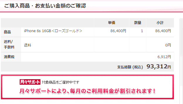 私の場合は、iPhone6s 16GBでしたが、税込みで9万3312円だそうです。