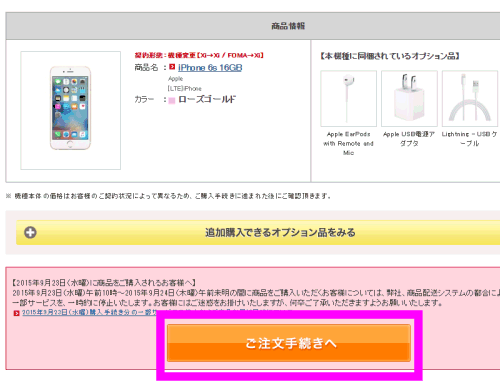 オプション品もここで追加できますが、とりあえず「ご注文手続きへ」へ進みました。