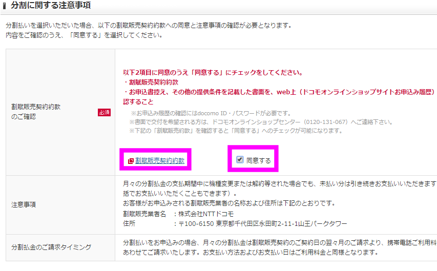 リンクをクリックし、「割賦販売契約約款」を表示させないと、同意するにチェックが出来ない仕様になっています。