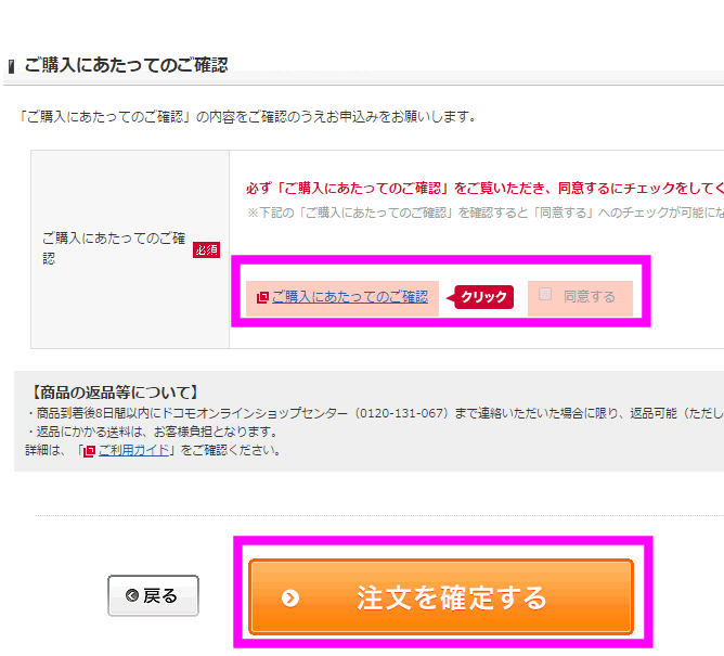 「ご購入にあたってのご確認」に目を通し、「同意する」にチェックを入れたら、「注文を確定する」をクリックします。