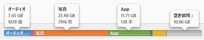 こうしてみると、写真が最も容量を消費することがわかります。