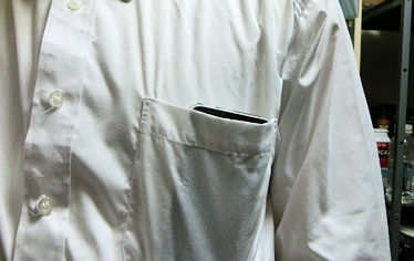 男性のYシャツ胸ポケットに入れた時に、1~2センチほど頭が出る大きさになります。