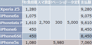 参考価格として、アンドロイドの「Xperia Z5」と、Y!モバイルの「iPhone5s」も載せてみました。